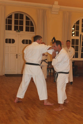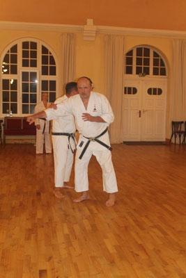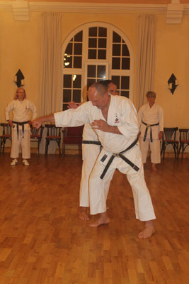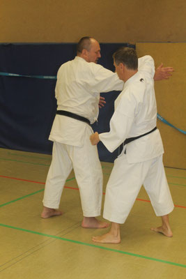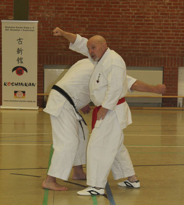 Mit Volker Schwinn und Frank Herholt am Samstag, den 27.09.2025 in Stade wurde erfolgreich Bunkai, Selbstverteidigungsübungen, Kara-T-Robics und einiges mehr durchgeführt. Eine Dan-Prüfung im Stil Koshinkan fand einen Tag vorher, am 26.09.24 statt.