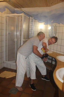 Der Lehrgang in der Proitzer Mühle ist meist sehr beliebt. Mit Frank Herholt und Peter Falk wurde Koshinkanähnlche Selbstverteidigung beigebracht. Es konnte von allen Teilnehmer sehr gut angenommen werden. So etwas empfehlen wir immer wieder. Selbstverteidigung rettet die meisten Leben.